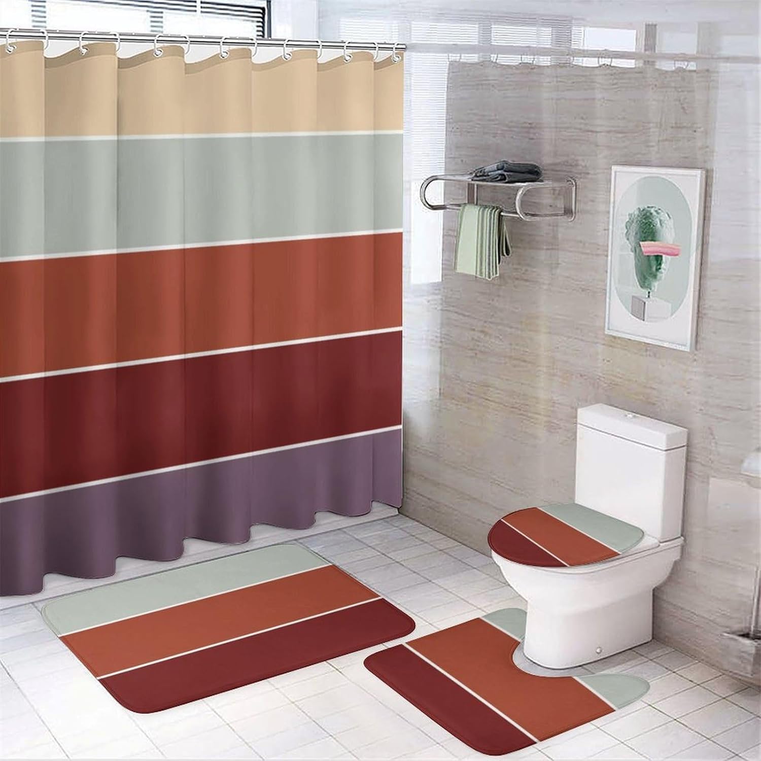 Why Choose Us: Adopt HD digital printing, clear vibrant design will bright up your bathroom! high quality flannel, used in the bathroom, it can be very effective and non-slip, helping you to enjoy a pleasant bath time. Neat wiring, excellent sewing, adopts durable and lightweight polyester fabric, can keep the air flowing effectively and also opaque to keep privacy without strange smell. We provide 12 hooks to our customer, ensure everyone can easy to install this shower curtain. Standard Size: Shower Curtain: 183 x 183cm/72 x 72inch Bathroom mat: 74 x 44.5cm/29.1 x 17.5inch O shape toilet lid cover: 44 x 35.5cm/17.3 x 14inch U shape rug: 45x 34cm/17.7 x 13.4inch Package Included: 1 × Shower Curtain 12 × Plastic C Ring 1× Bathroom Mat 1 × Toilet Lid Cover 1 × U Shape Rug Warm Notice: 1.Color difference is allowed because the light and screen effects. 2.There may be a difference in product size for manual.