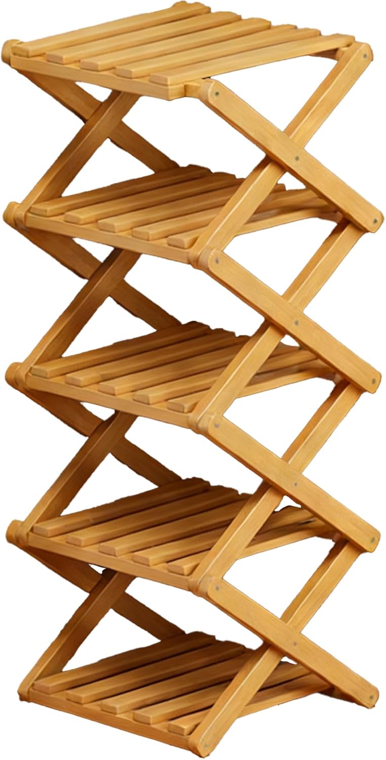 The 9-Tier No-Assembly Bamboo Rack, Foldable Vertical Storage Rack Without Assembly for Entryway, Cabinet, Dormitory Space Saving Bamboo Folding Shoe Rack Specifications: Name: The 9-Tier No-Assembly Bamboo Rack Material: Nan Bamboo Color: Yellow, Brown Tiers: 2/3/4/5/6/7/8/9/10 fixed shelves Weight: 3100g / 6.8lb Size: 31x27x23.5cm / 12x10.6x9.3in Care Instructions: Wipe clean with damp cloth Features: 1. No assembly required, unfolds in seconds 2. Foldable for vertical storage and saves space 3. X-frame design for robustness and stability 4. Simply wipe with a clean wet wipe 5. Multi-purpose storage (shoes, books, plants, etc.) Package includes: 1 Pcs * The 9-Tier No-Assembly Bamboo Rack Note: 1. Slight differences in size or weight are possible due to manual measurement. 2. Product colors may differ slightly from the pictures, as screens and lighting conditions can impact visual presentation. Have a nice day!